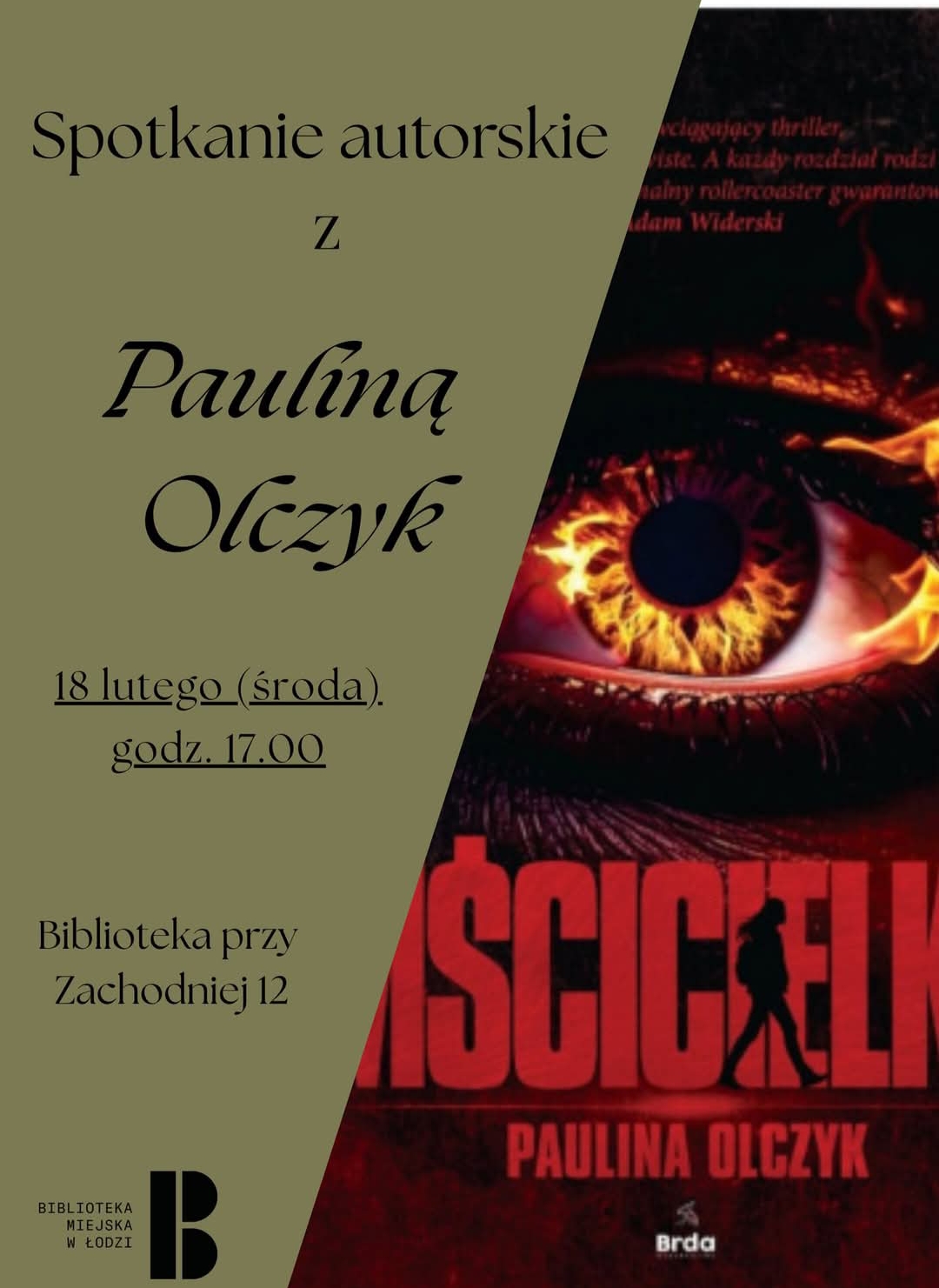 Spotkanie z Pauliną Olczyk w Łodzi Zapraszamy na spotkanie z Pauliną Olczyk, autorką książki pt. Mścicielka + Dodaj do Google Calendar + iCal / Outlook export 00 dni 00 godzin 00 minut 00 sekund Data lut 18 2026 Czas 17:00 - 18:00 Lokalizacja Biblioteka Miejska w Łodzi "BIBLIOTEKA PRZY ZACHODNIEJ", filia nr 12 Zachodnia 12, Łódź Poleć to wydarzenie Logowanie