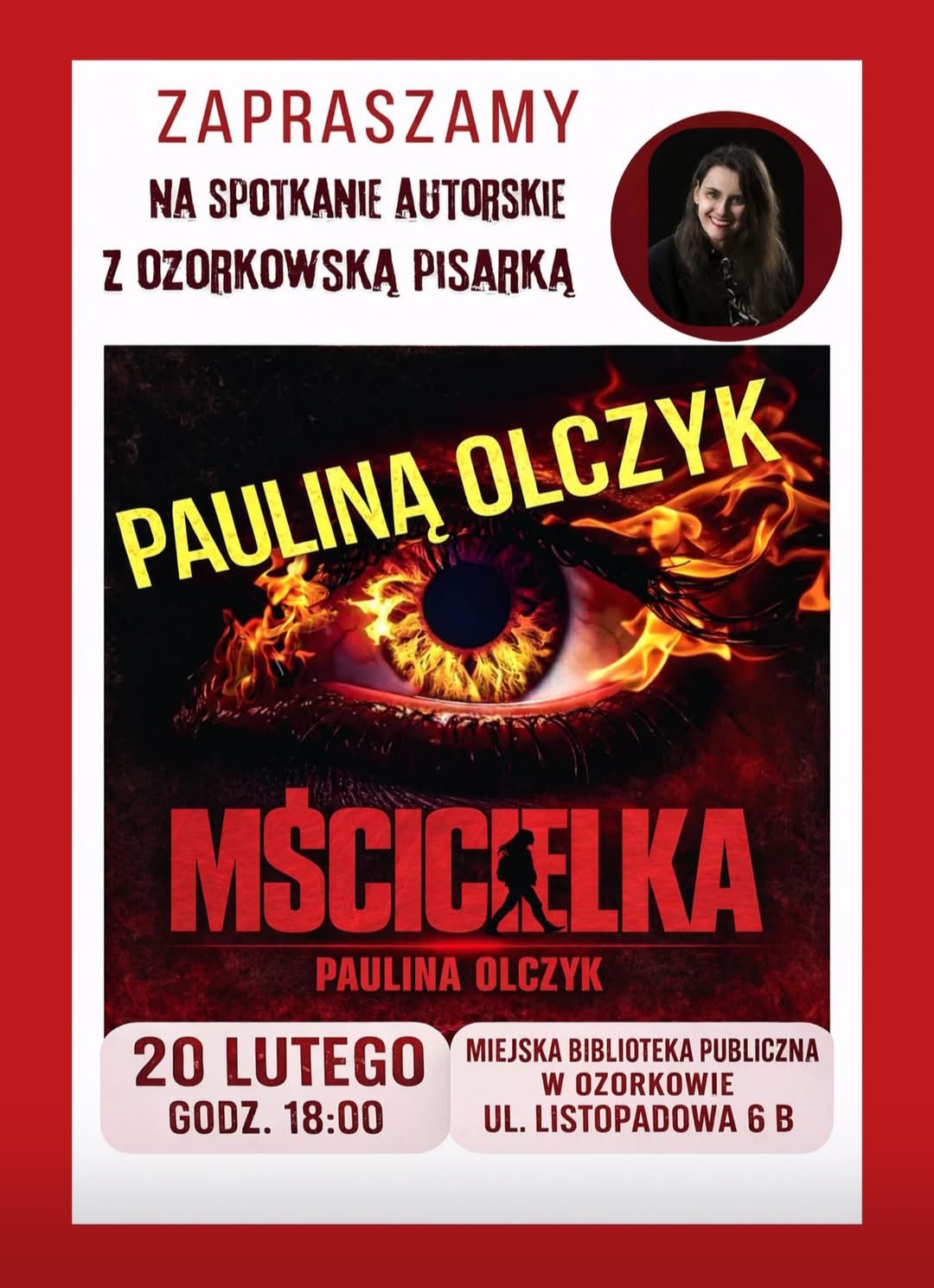 Spotkanie z Pauliną Olczyk w Ozorkowie Zapraszamy na spotkanie autorskie z Pauliną Olczyk w Ozorkowie + Dodaj do Google Calendar + iCal / Outlook export 00 dni 00 godzin 00 minut 00 sekund Data lut 20 2026 Czas 18:00 - 20:00 Lokalizacja Miejska Biblioteka Publiczna w Ozorkowie Listopadowa 6b, Ozorków Poleć to wydarzenie Logowanie